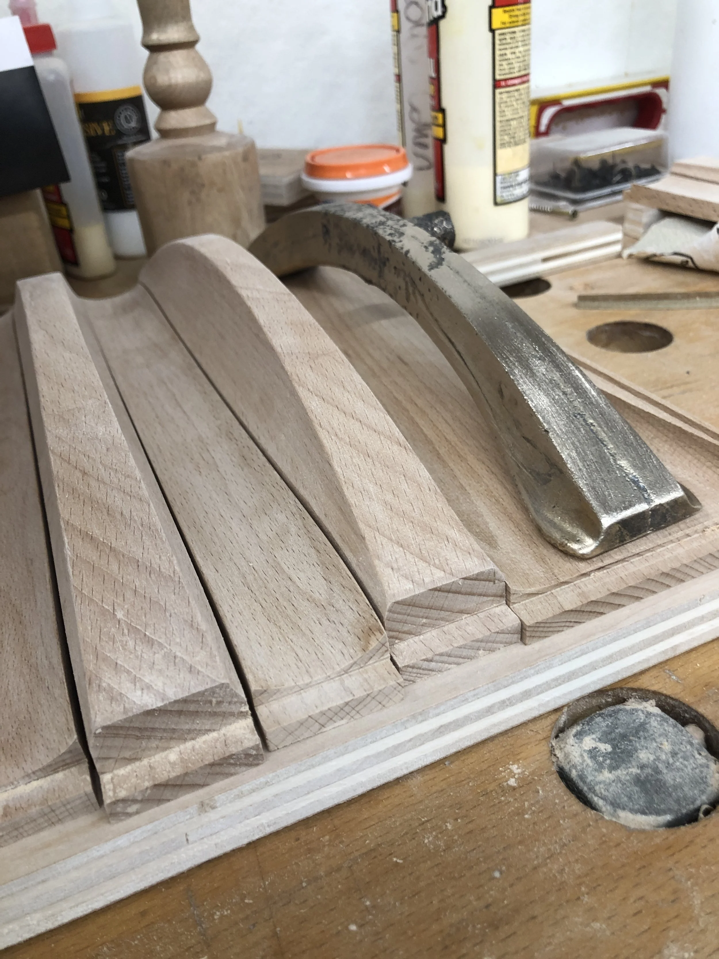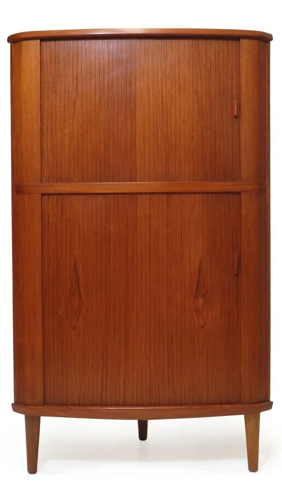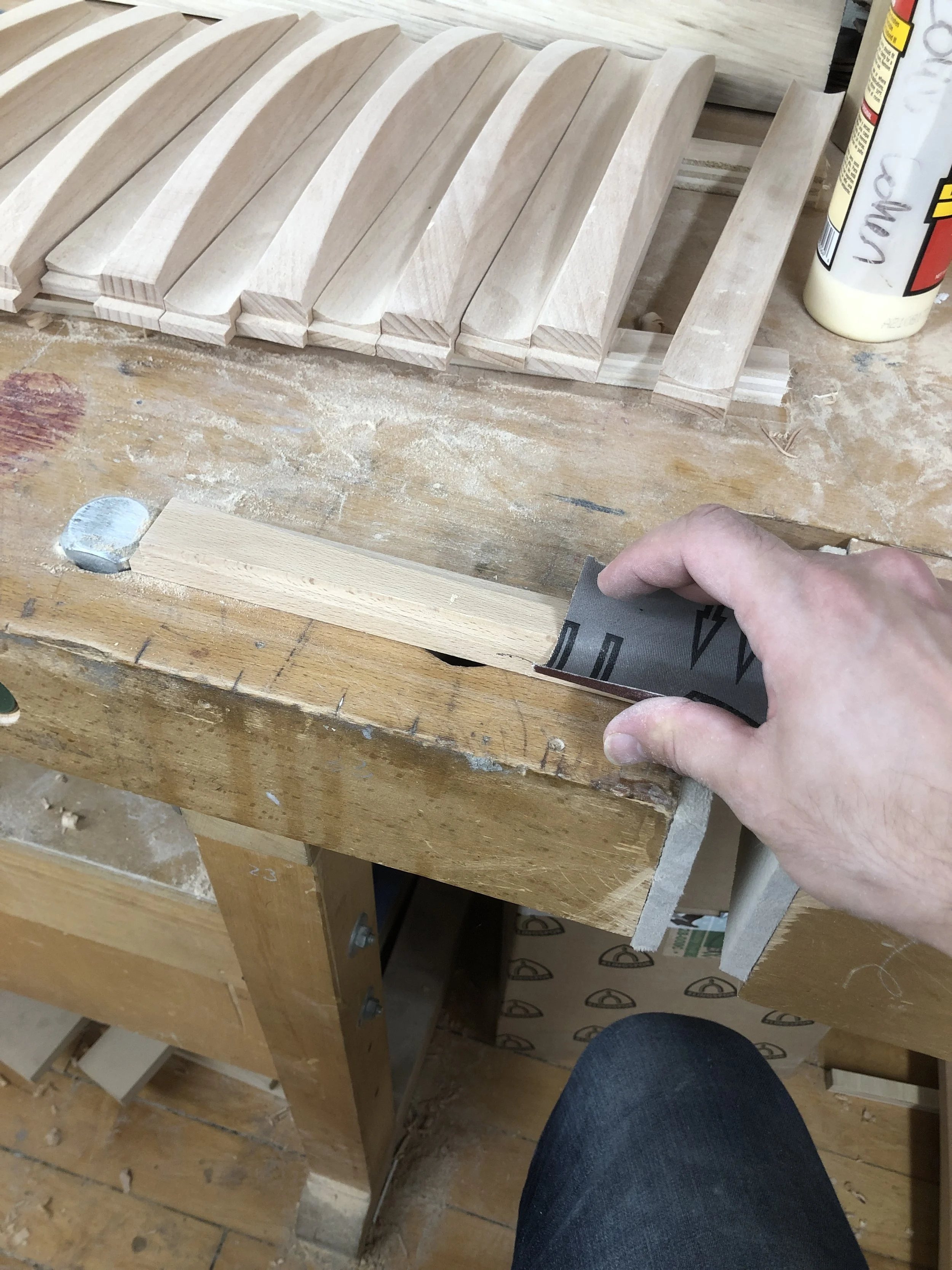 Inspired by the sweep of a rib cage, the Breast Bone Cabinet was an exercise in pushing inspiration from superficial ornamentation to core concept. The tambour doors, initially envisioned as hinged panels, allowed for the compounding curvature that captures the volume of the rib cage. Graduating hollows in the center of the wooden ribs and the light stance of the base contribute to a levity and organic quality, while natural pitting that occurred in the cast bronze handles mimics the porous nature of bones. The black milk paint shrouds the hidden warmth of natural wood that exists inside the form.